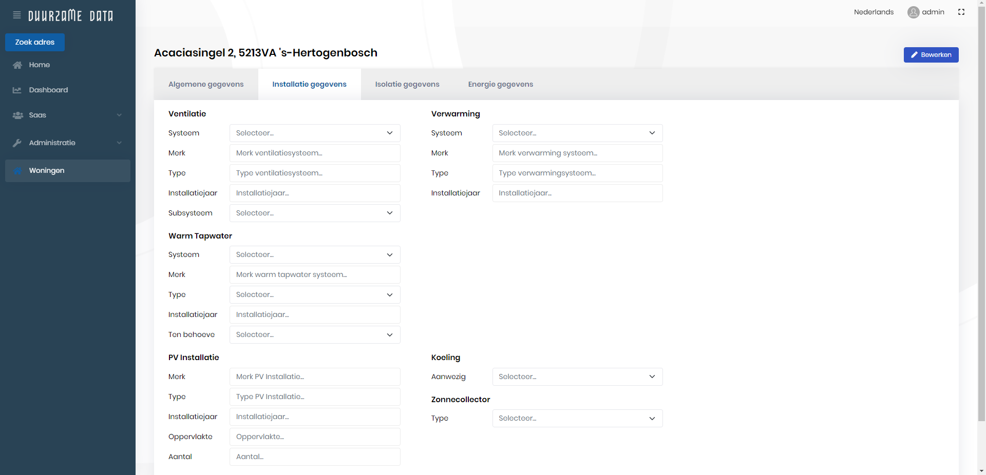 Door middel van dit bewerkscherm is het eenvoudig om installatie wijzigingen aan het vastgoed direct goed vast te leggen.